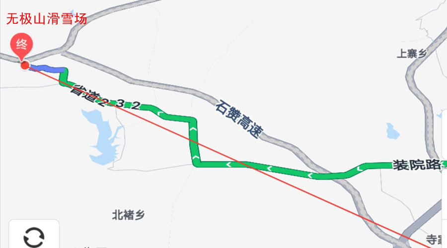 无极山滑雪场距石家庄市43公里,车程1小时左右。